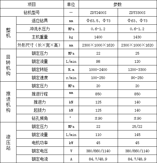 2. 采用雙泵系統(tǒng),回轉(zhuǎn)和給進參數(shù)獨立調(diào)節(jié),變量馬達可以進行無級調(diào)速,調(diào)高了鉆機對不同工況的適應能力;