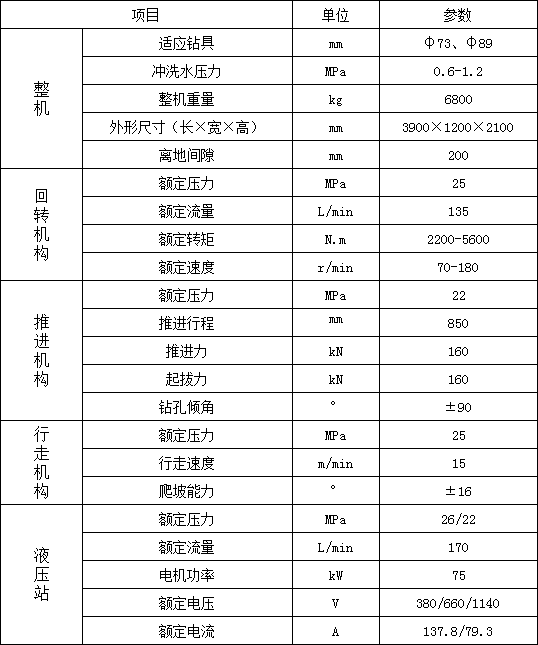 1. 履帶行走,大大提高移鉆、穩(wěn)鉆的效率,顯著減輕工人的體力勞動強(qiáng)度;